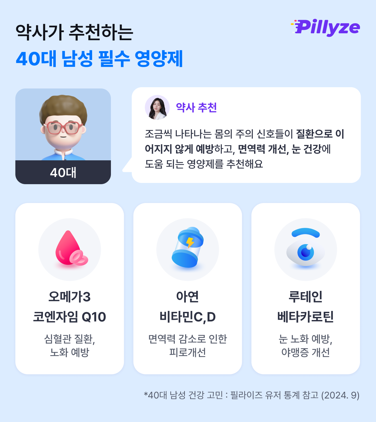 | 30대 | 과로형, 근육 피로 | 비타민B군 + 마그네슘 + 아연 |